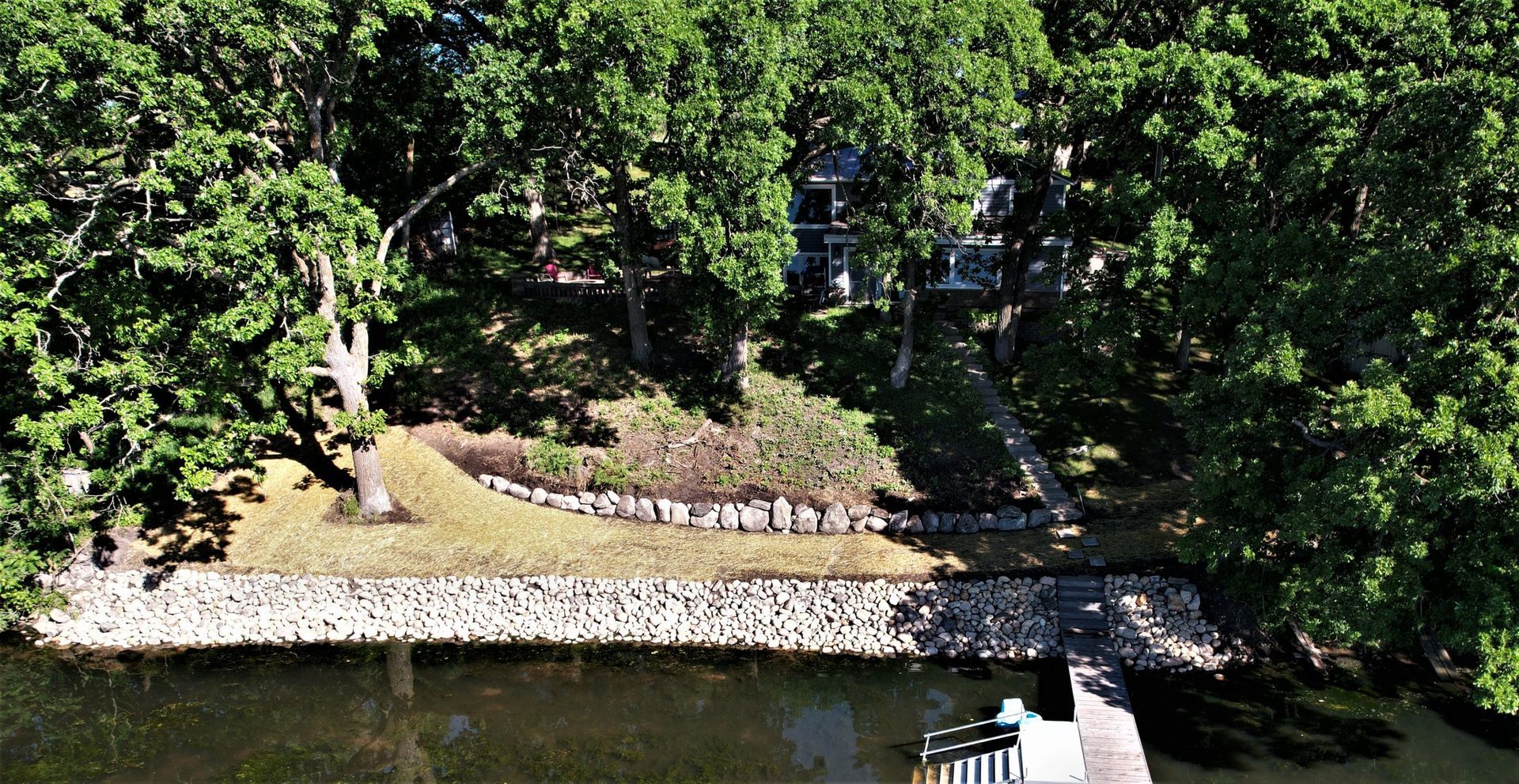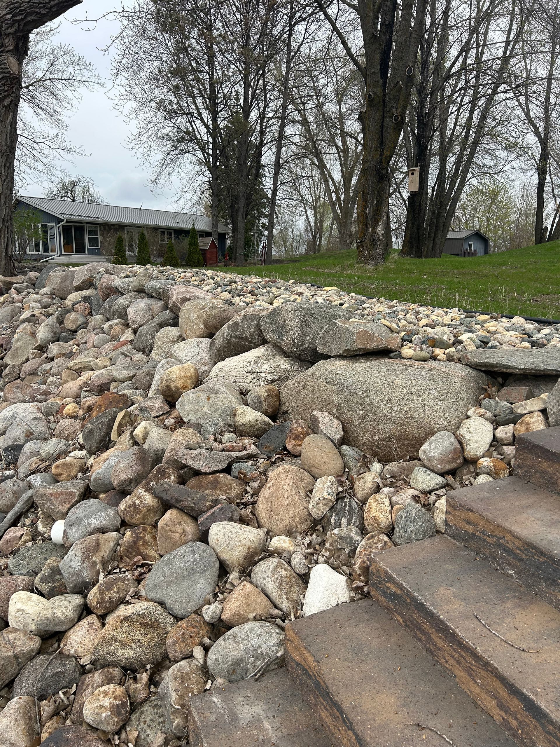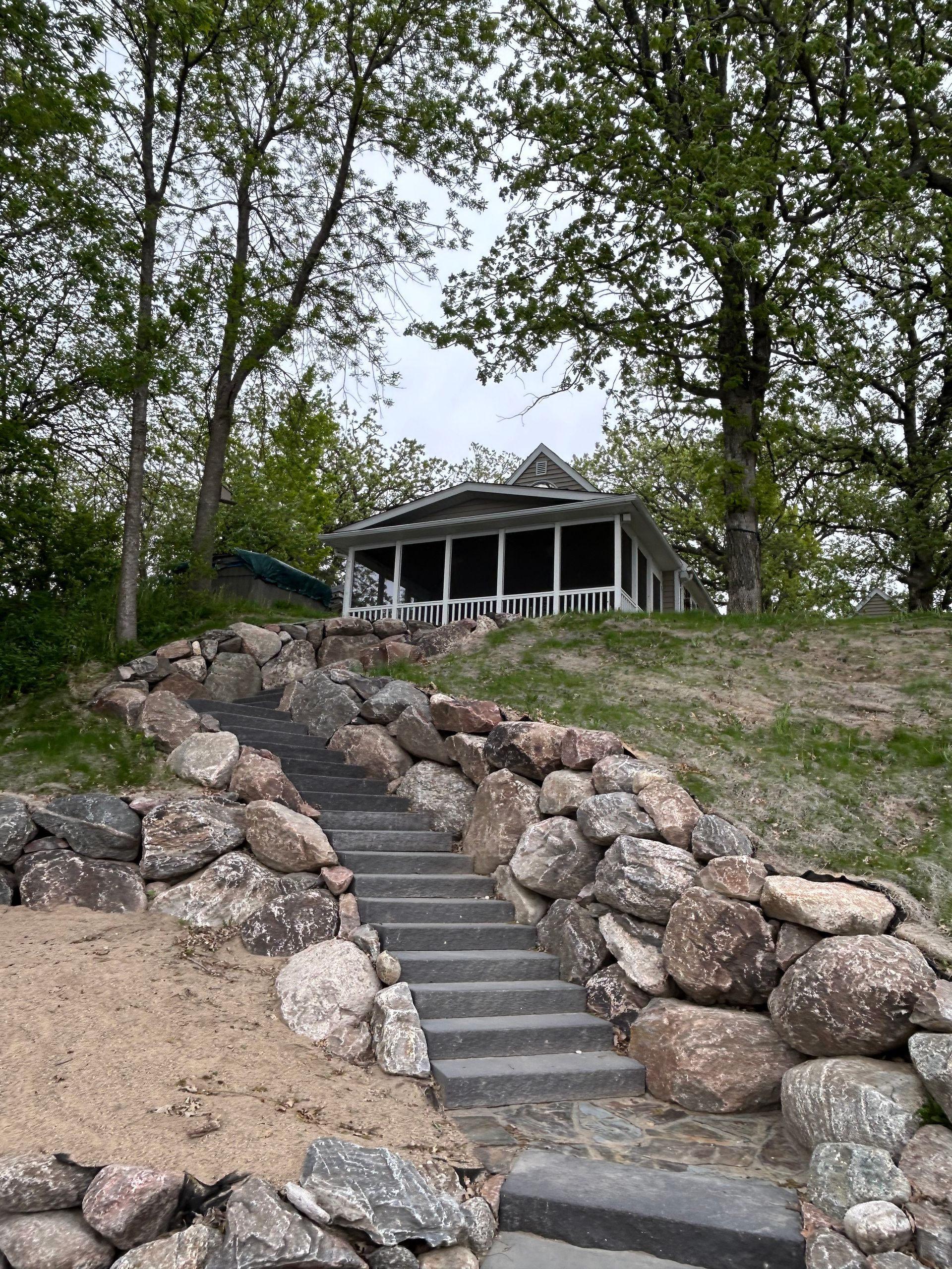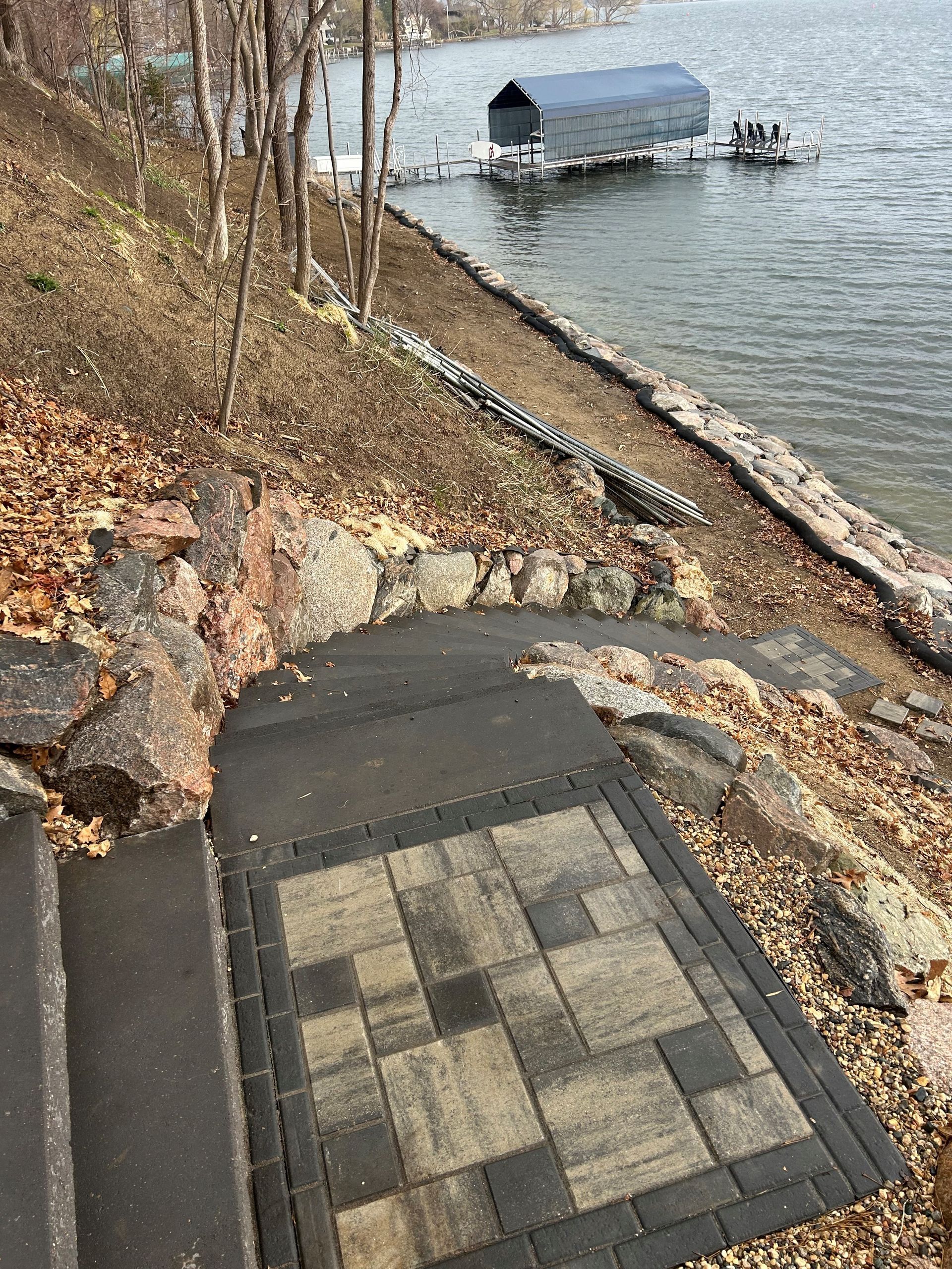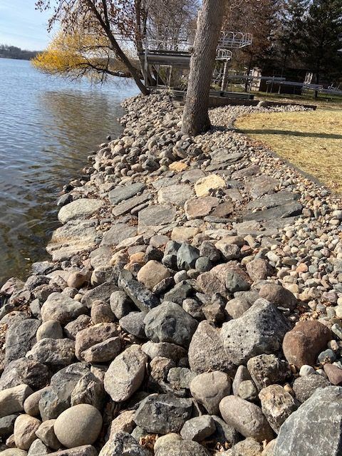 We strategically design landscaping using natural materials like rock to restore your shoreline and reduce erosion and flooding. Check out some restored shorelines to see the impact restoration can have, including a more functional shoreline space for clients’ homes.