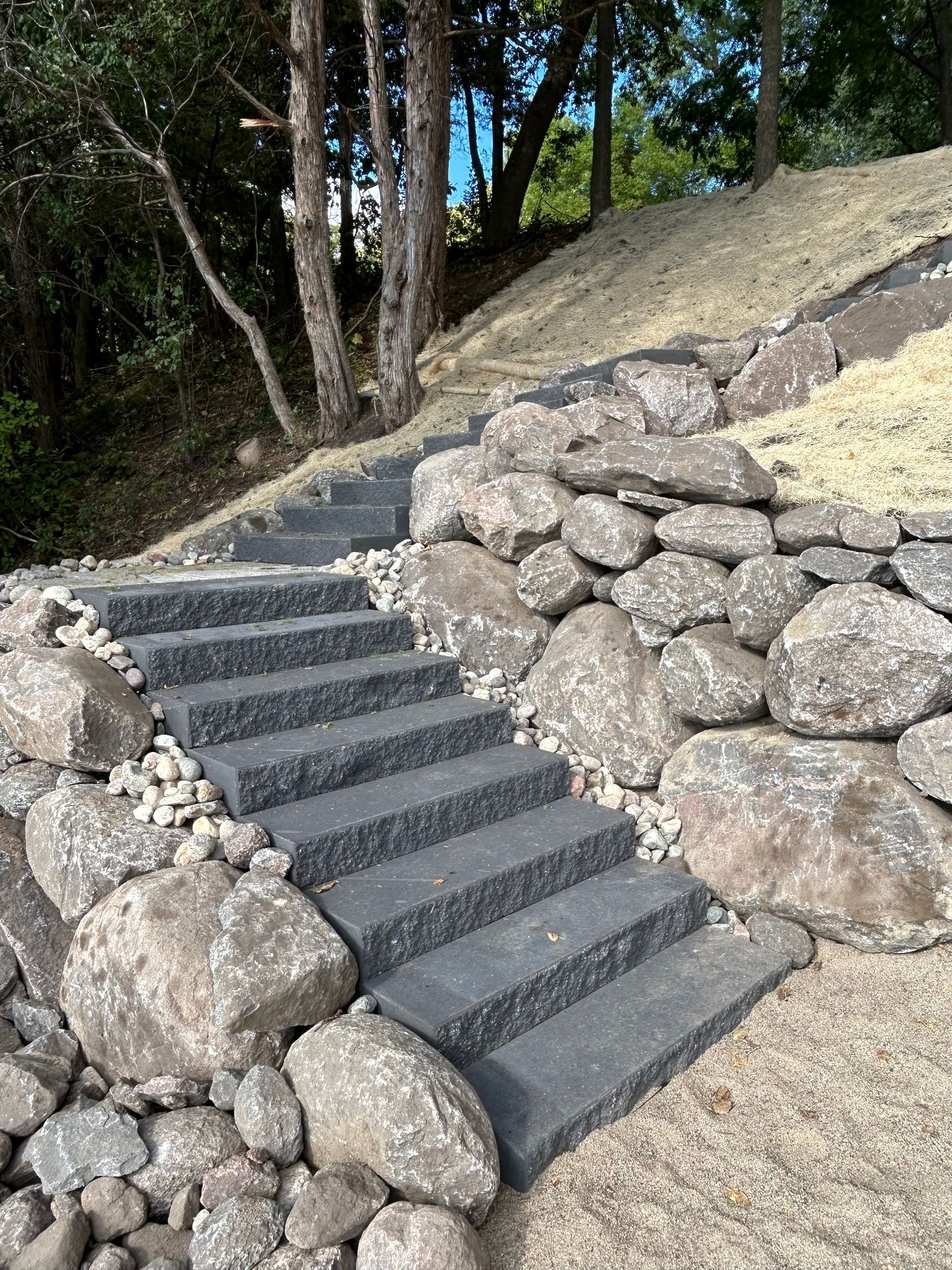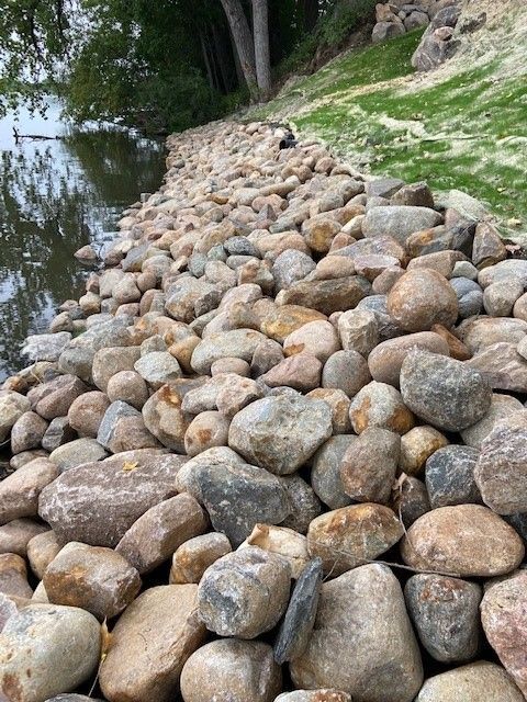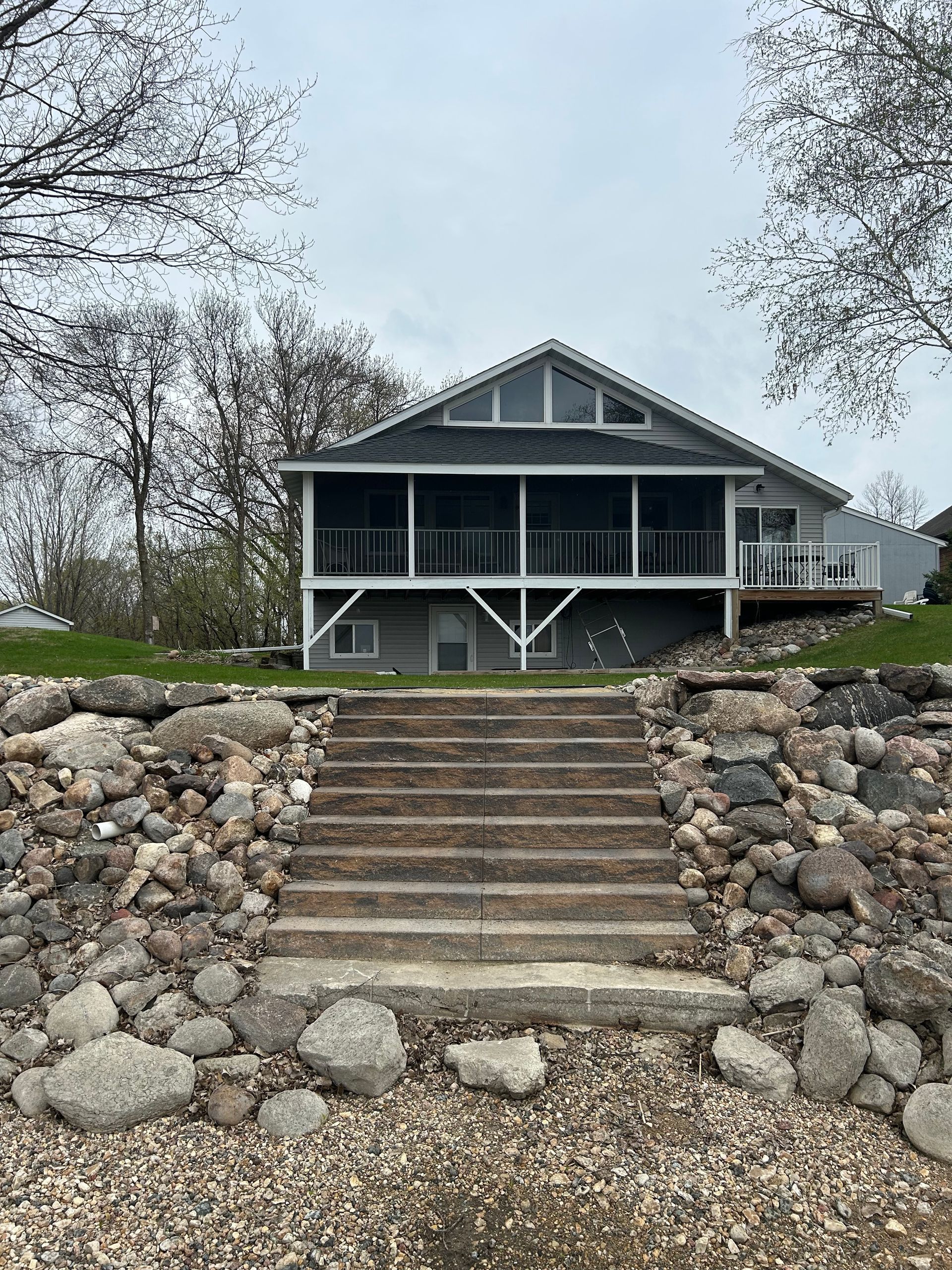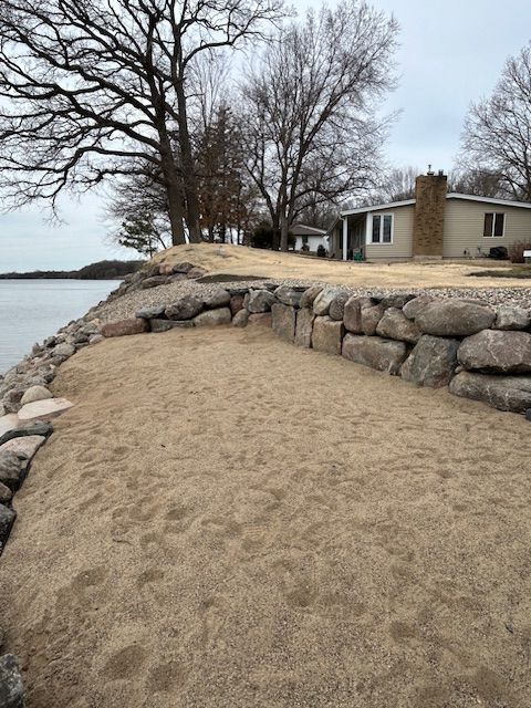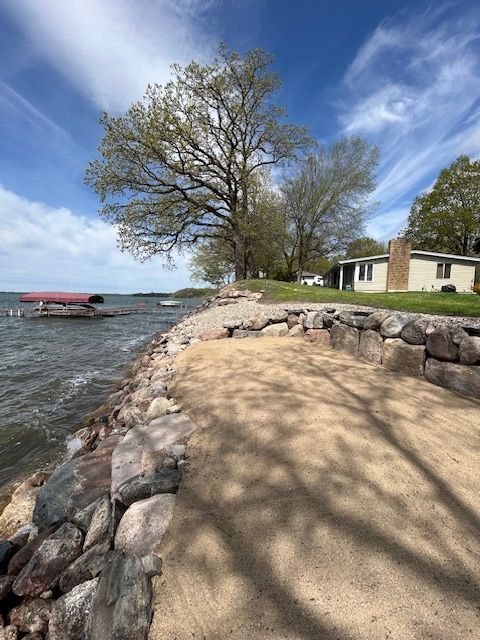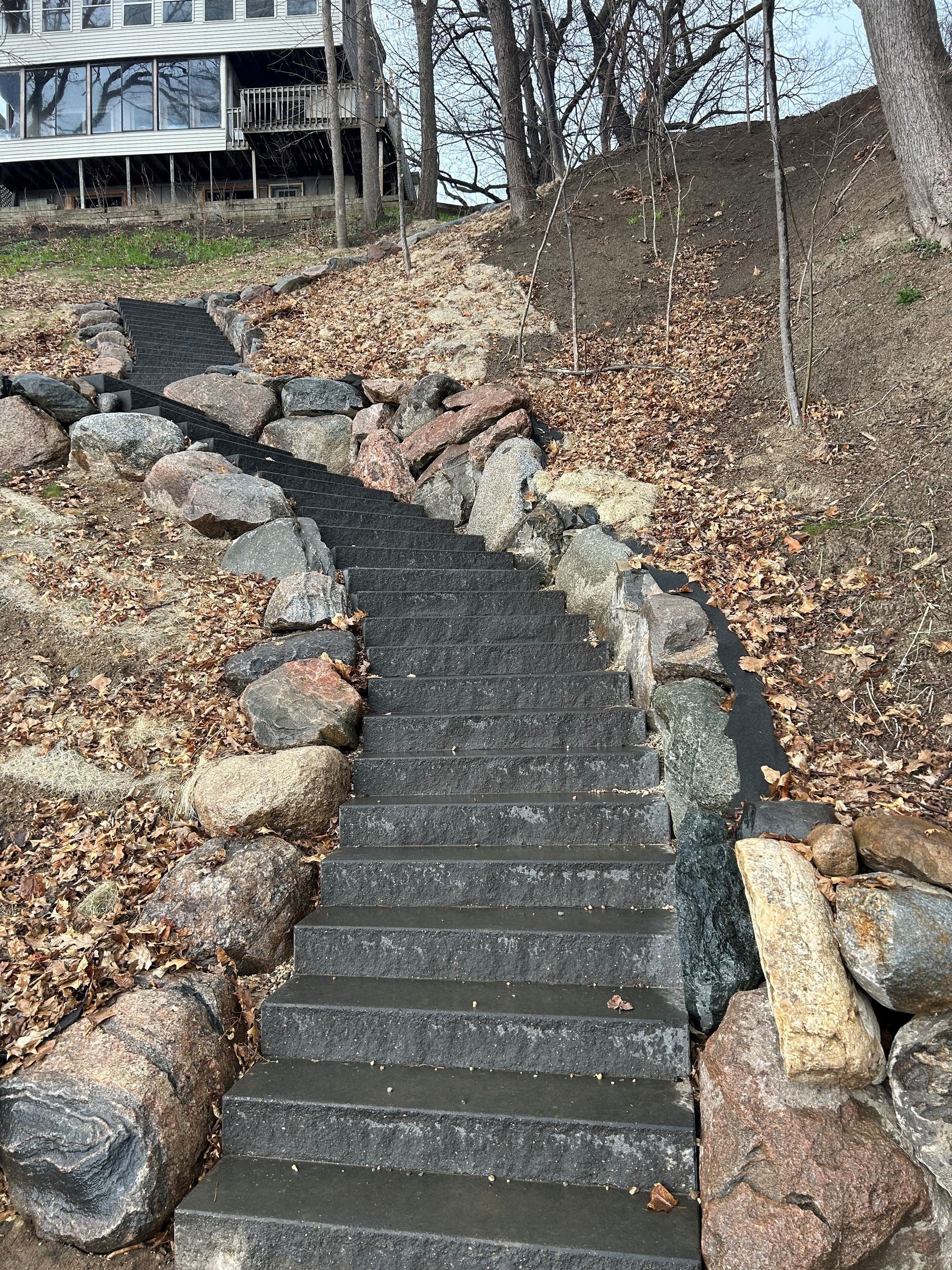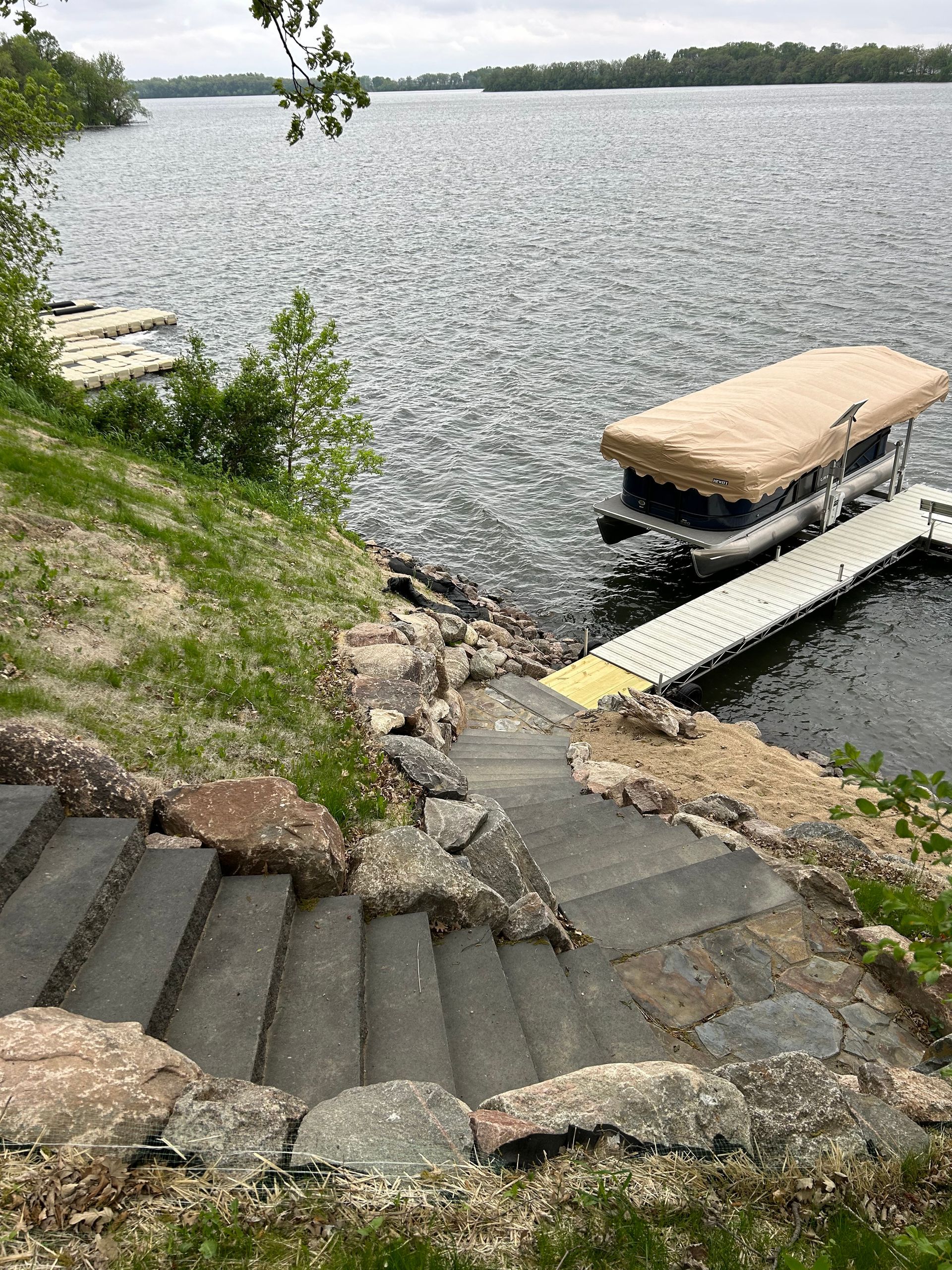 We strategically design landscaping using natural materials like rock to restore your shoreline and reduce erosion and flooding. Check out some restored shorelines to see the impact restoration can have, including a more functional shoreline space for clients’ homes.