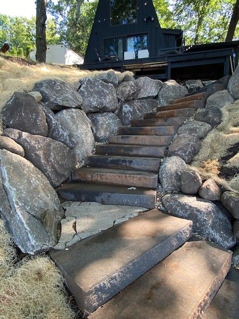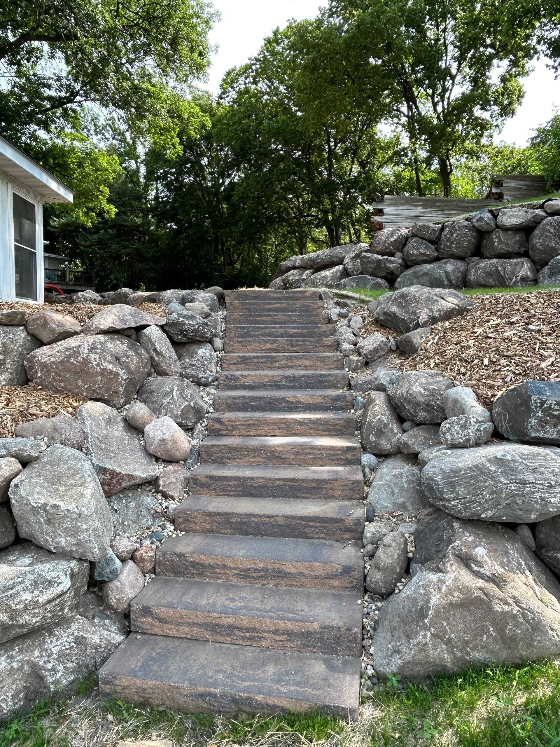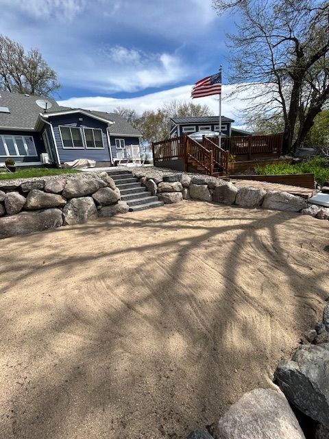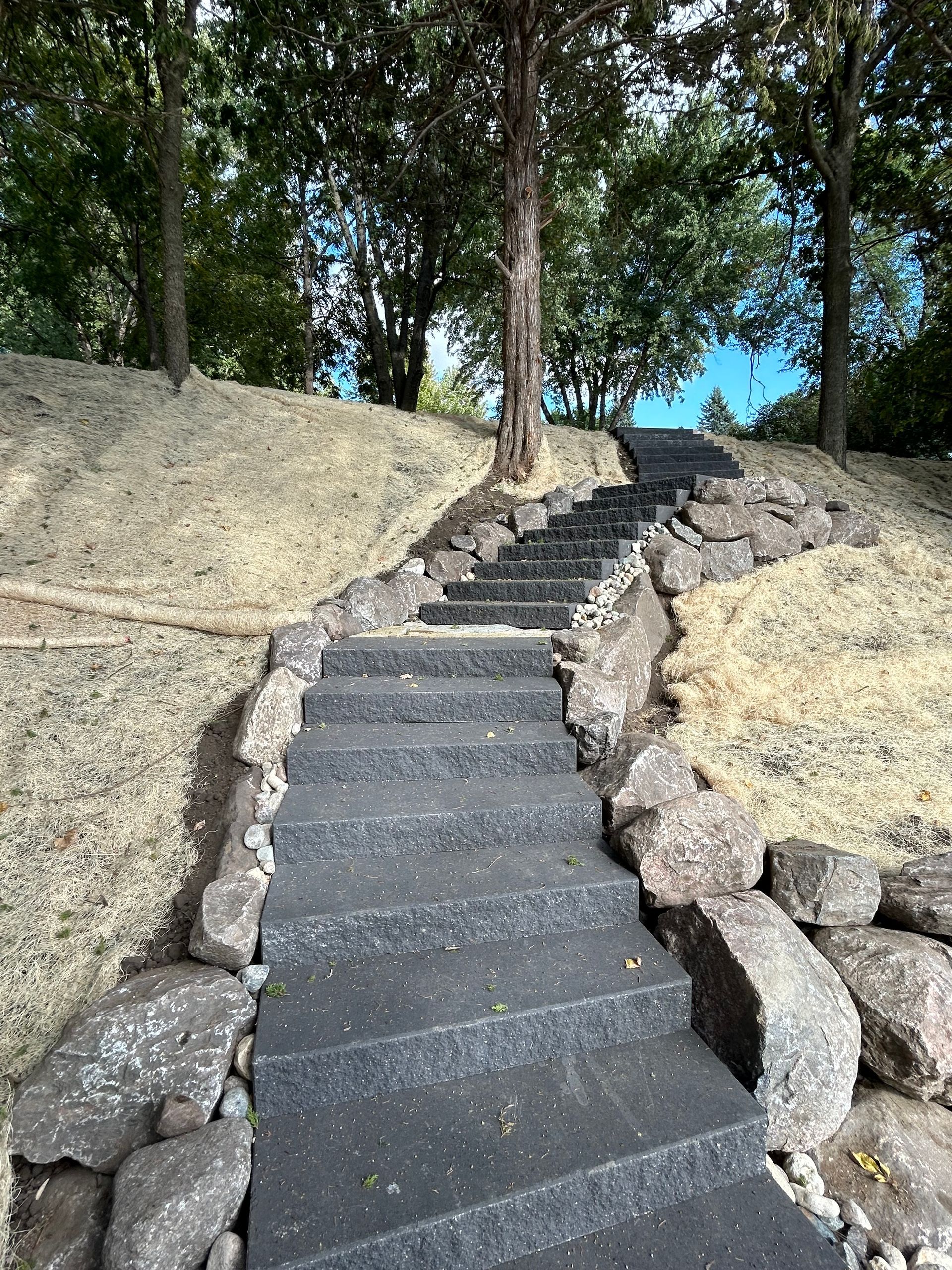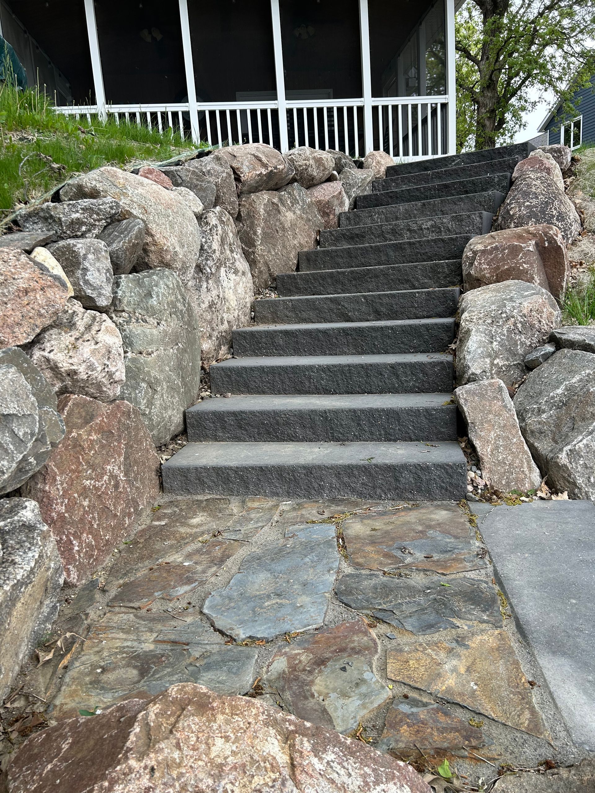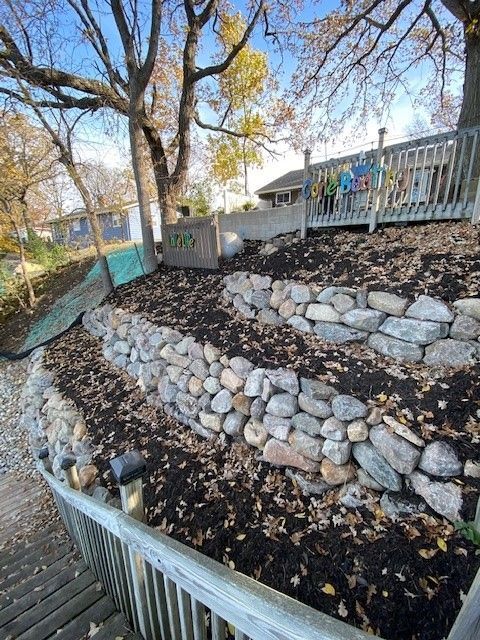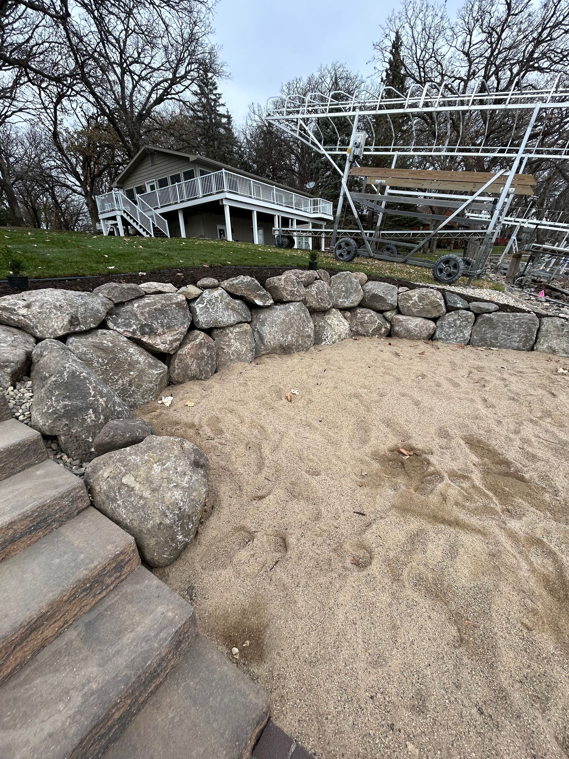 We strategically design landscaping using natural materials like rock to restore your shoreline and reduce erosion and flooding. Check out some restored shorelines to see the impact restoration can have, including a more functional shoreline space for clients’ homes.